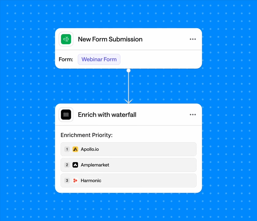 Default enriches leads in real time using waterfall logic across multiple providers—maximizing match rates and ensuring every record is complete from the moment it’s captured.