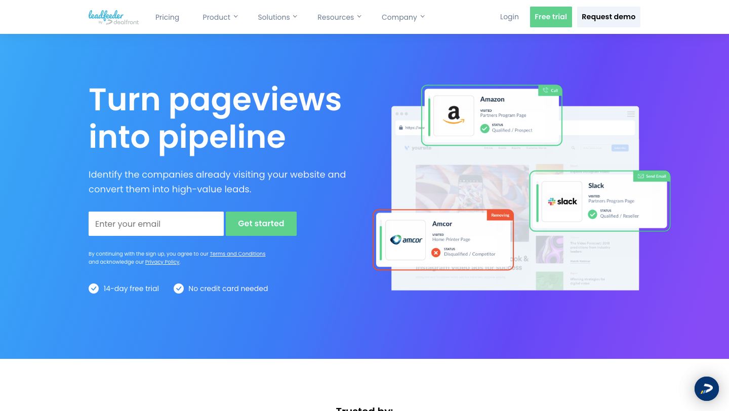 Leadfeeder turns anonymous website traffic into usable sales intelligence by matching visitor IPs to company records. It gives GTM teams an early signal of which accounts are browsing, what pages they’re viewing, and how often they return. That context can trigger faster outreach or smarter lead scoring, and integrations push the data straight into Salesforce, HubSpot, or Slack. However, you’ll still need enrichment tools for contact-level details, and IP matching can miss remote or mobile traffic.