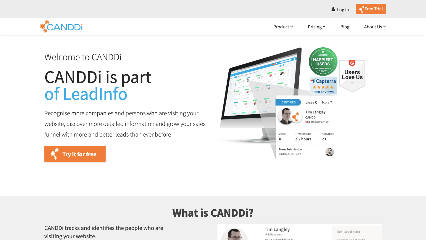 CANDDi focuses on contact-level tracking—capturing individual visitor identities and stitching together behavior across sessions and devices. It’s designed for mid-market sales teams that want to understand how named leads engage after initial contact.