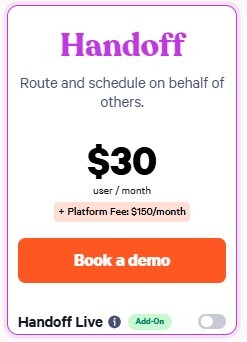 Handoff routes and schedules meetings between SDRs and Account Executives based on defined routing rules such as region, industry, or account ownership. It supports round-robin logic and shared calendars.Â