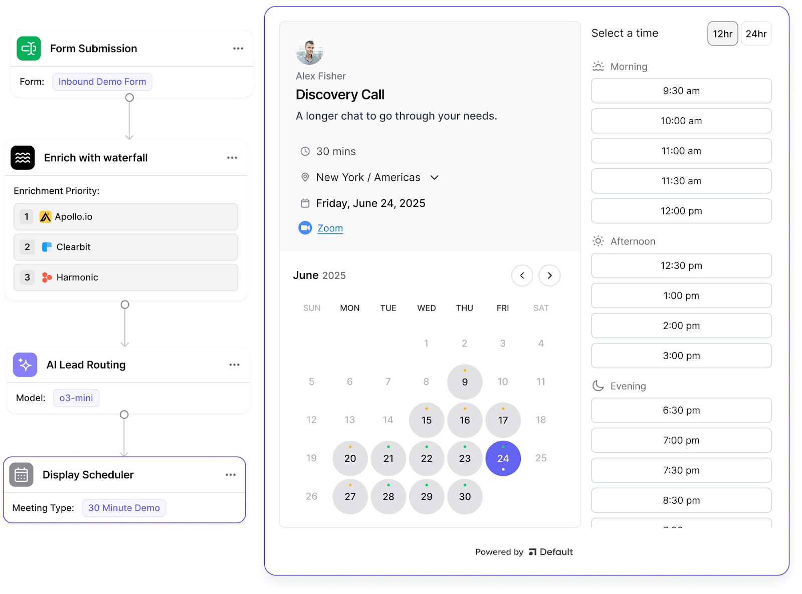 Book a demo to see how Default runs the SDR → AE handoff as one workflow — routing, scheduling, CRM sync, and SLA enforcement — so qualified leads move fast and accountability is built in.