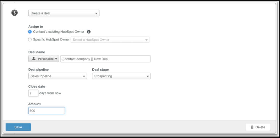 Go to Automation → Workflows and create a contact-based or deal-based workflow, depending on your use case (e.g., inbound leads vs. pipeline deals).
