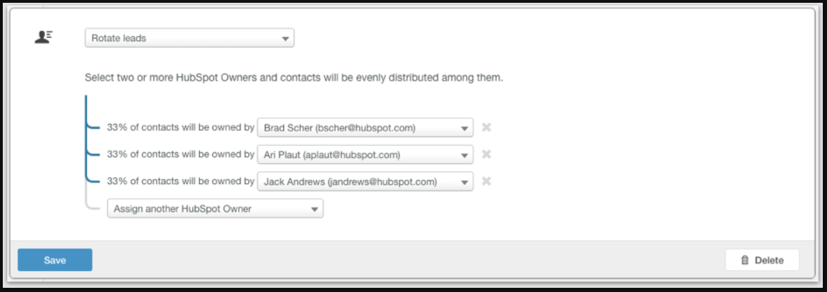 This is where HubSpot assigns ownership sequentially across users.