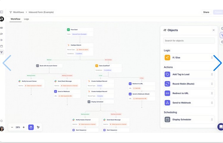 - Mature visual flow builder: The drag-and-drop interface makes it easier for RevOps teams to iterate on routing logic without relying on engineering.