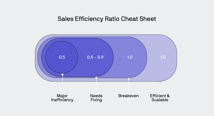 - Sales efficiency shows how effectively your team turns sales and marketing investment into revenue. It’s measured as a ratio — with 1.0 as breakeven, and anything above that signaling efficient growth.