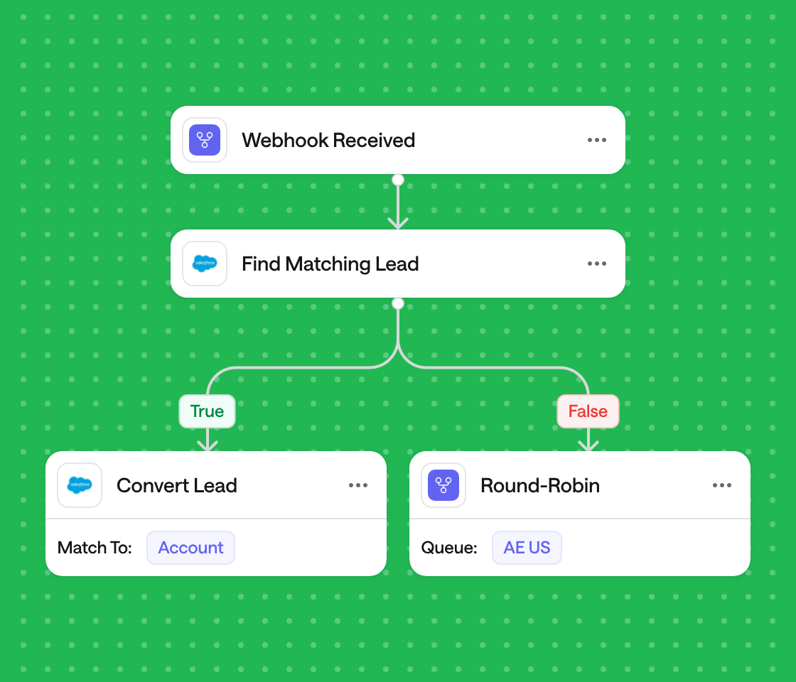Webhooks cut the lag between a conversion event (demo request, pricing page action, MQL threshold) and the next operational step. That improves speed-to-lead, reduces SLA misses, and prevents hot leads from sitting unworked due to sync timing or handoffs.